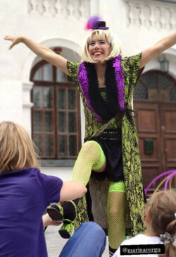 Autora y actriz de “Grande, como cola de estrella fugaz” espectáculo unipersonal de clown de sala.