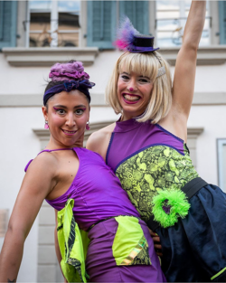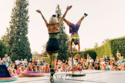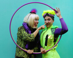 Menayerí Circo es un dúo de mujeres de Argentina que combina impactantes destrezas circenses con una gran comicidad física.